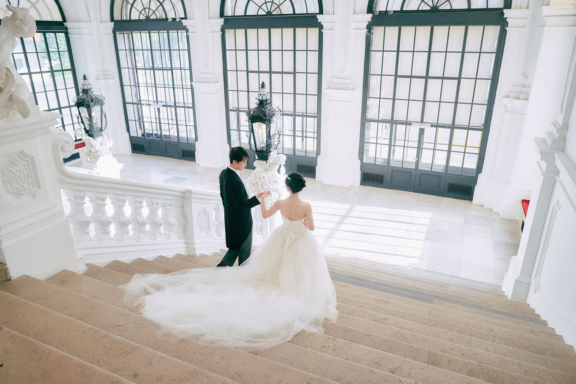 In a magical union blending Eastern elegance with Western grandeur, a young, sophisticated, and wonderfully shy Japanese couple chose Vienna’s iconic Belvedere Palace as the breathtaking setting for their unique destination wedding. The Belvedere, renowned for its stunning Baroque architecture and rich history, provided a truly regal backdrop for their nuptials. Built in the early 18th century by Prince Eugene of Savoy, this magnificent palace complex, with its Upper and Lower Belvedere connected by a formal garden, has witnessed centuries of history and hosted countless celebrations, making it a truly special place to begin a marriage.