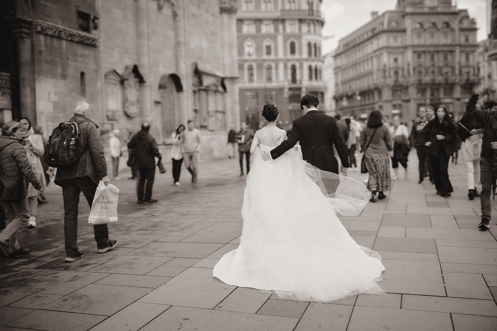 Following their intimate ceremony, the bride and groom embarked on a picturesque wedding portrait session, capturing the essence of their love against Vienna’s historic landmarks. From the romantic, meticulously landscaped gardens of the Belvedere, where the symmetrical fountains and sculpted hedges offer endless photo opportunities, to the charming, cobblestone streets of Vienna’s historic city center, their photos tell a story of cultural fusion and timeless beauty. Vienna, a city steeped in music, art, and imperial history, offers a wealth of stunning locations for wedding photography, from the grandeur of the Hofburg Palace to the whimsical beauty of the Prater amusement park. This couple’s wedding was an unforgettable spectacle in one of Europe’s most enchanting cities, a perfect blend of their heritage and the timeless romance of Vienna.