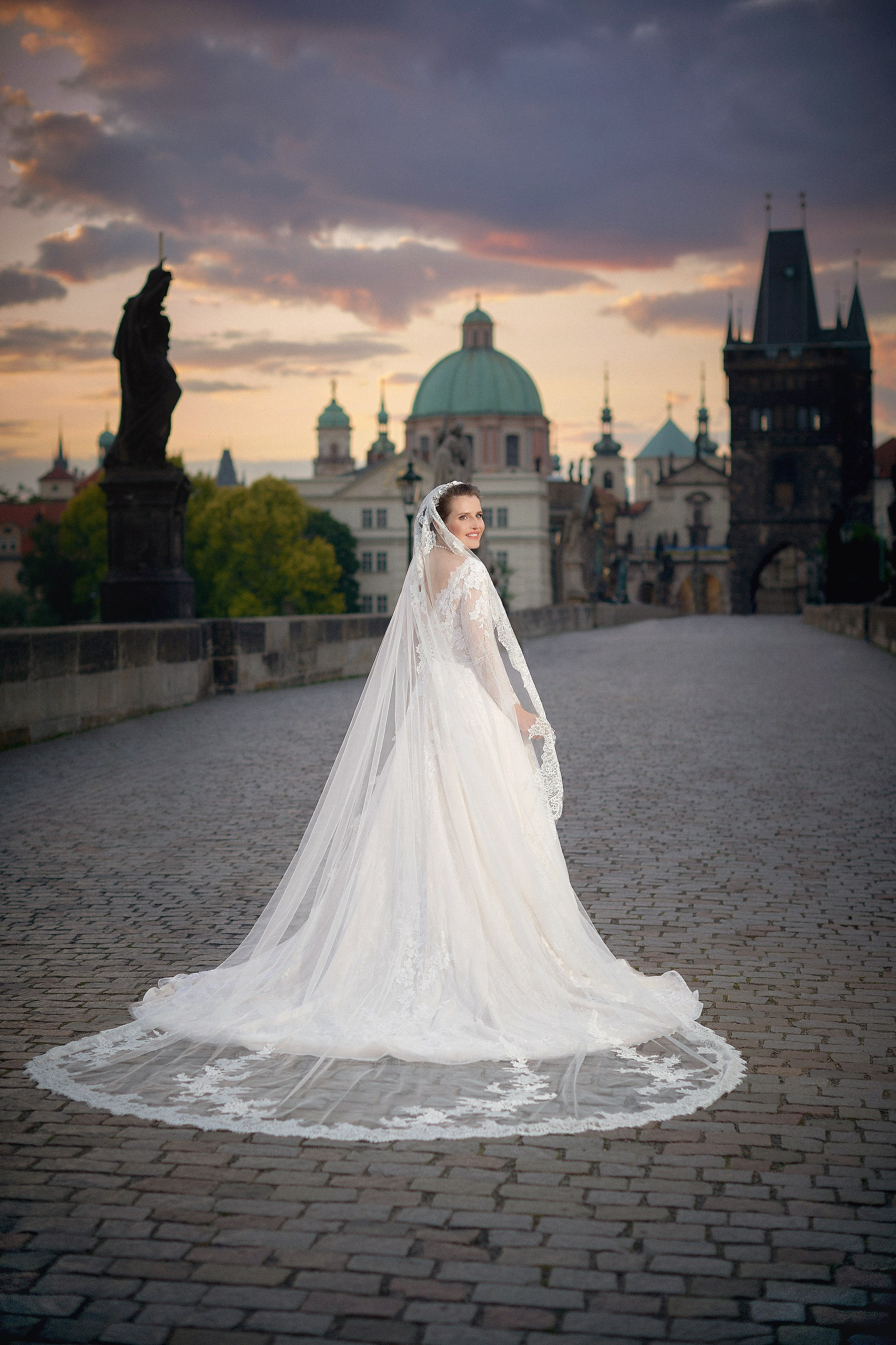 Known for their adventurous spirits and globetrotting Instagram feed, the couple didn’t stop their celebration on their wedding day. They decided to embark on a dream sunrise photoshoot in the historic locales of Prague where they were able to enjoy the city’s enchanting medieval charm without the crowds. Laughing, hugging, and reveling in the new chapter in their lives as husband and wife they enjoyed their stunning post-wedding portrait session at several of Prague’s more infamous locations. For anyone dreaming of a romantic European destination wedding, Adéla and Matthias’ story is pure inspiration.