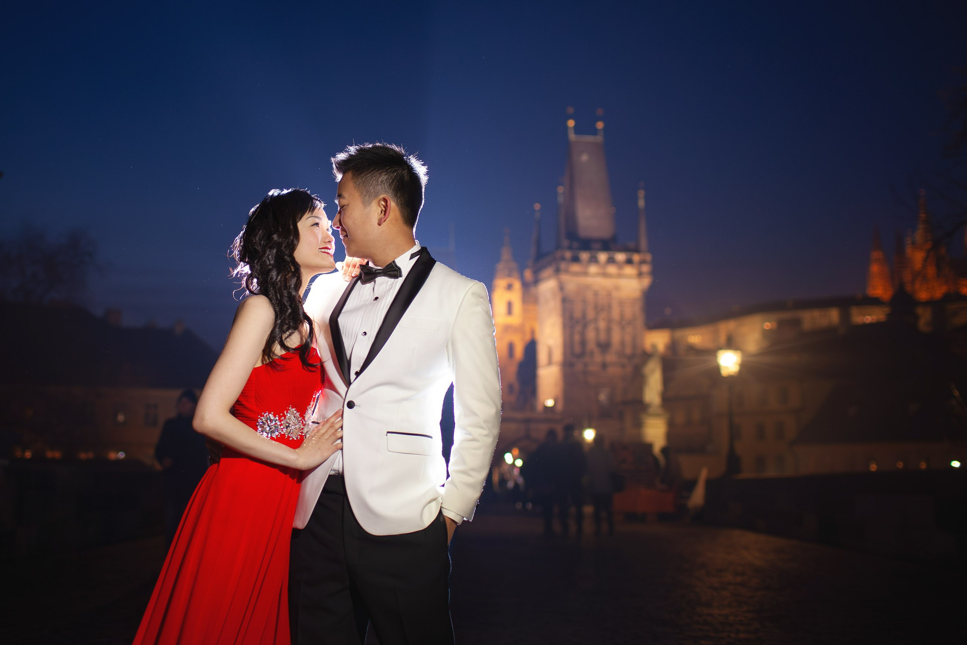 Their celebrations continued the next day with a stunning Prague photo session, where they captured both daylight and night portraits at iconic locations like Charles Bridge and Prague Castle. Unlike the candid wedding photos, this session involved creative lighting and gentle art direction, focusing on keeping the couple warm from the bitter, freezing cold. With two outfits and a selection of Prague’s most picturesque spots, Suki and Steven savored every moment in one of the world’s most romantic cities.